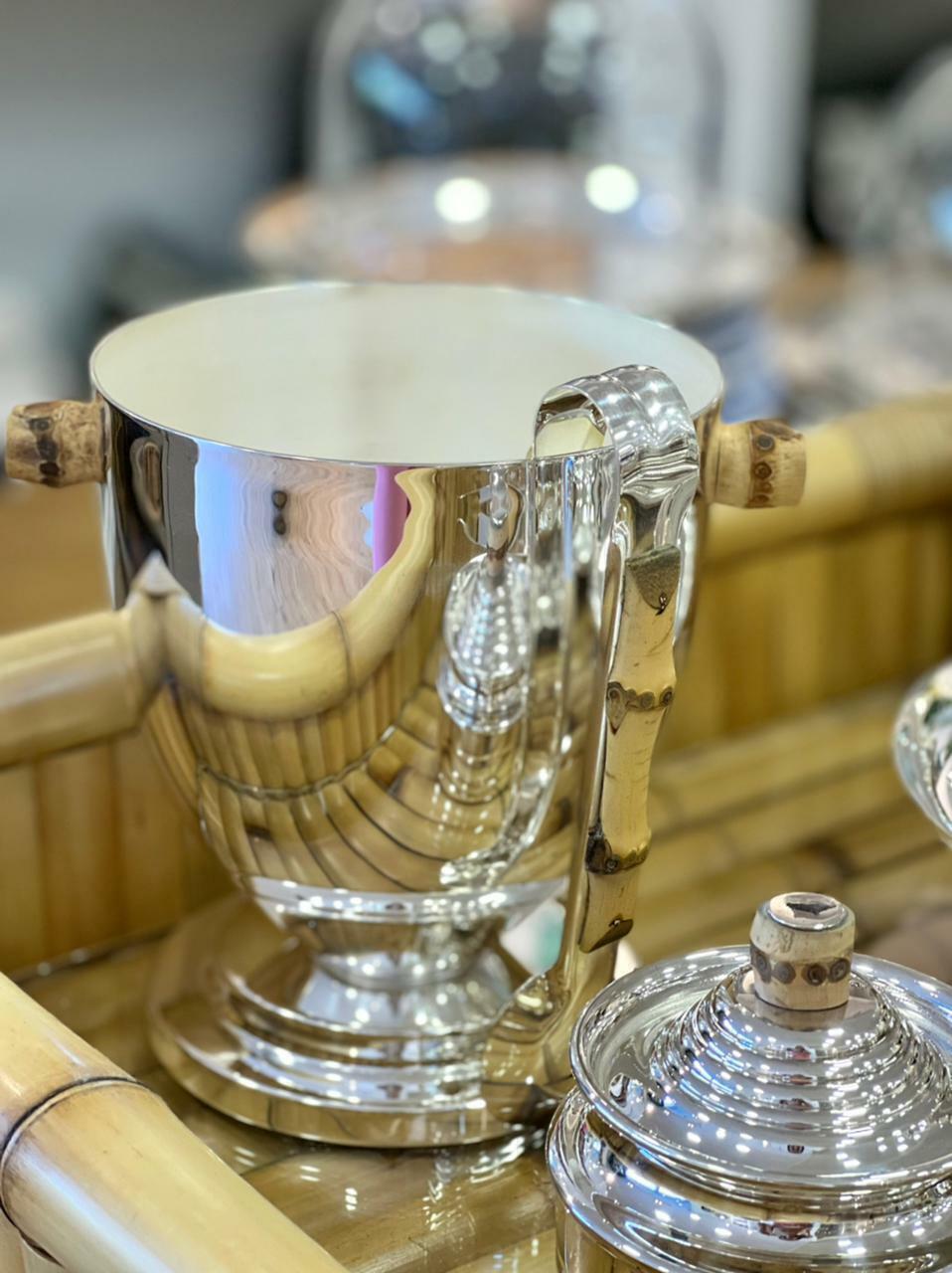 Balde de Gelo Sheffield Plate com Pinça e Bambu