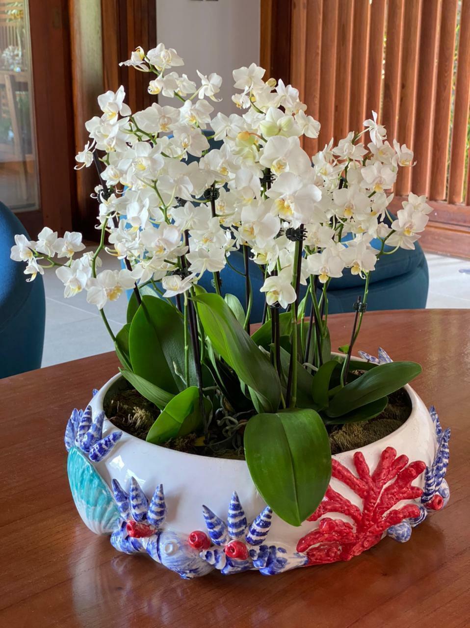 Este cachepot encantador possui um diâmetro de 34 cm e altura de 12,5 cm, ideal para exibir suas plantas favoritas ou como um elegante vaso decorativo. Seu design inspirado em conchas e corais traz a beleza do oceano para dentro de casa.